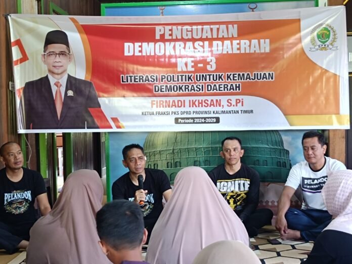 Persepsinews,com, Tenggarong — Upaya memperkuat demokrasi daerah terus dilakukan Anggota DPRD Kalimantan Timur, Firnadi Ikhsan, melalui kegiatan Penguatan Demokrasi Daerah (PDD). Pada pelaksanaan ke-3 yang digelar di Desa Loa Raya, Kecamatan Tenggarong Seberang, Minggu (12/4/2026), Firnadi mengangkat tema literasi politik sebagai fondasi kemajuan demokrasi lokal.